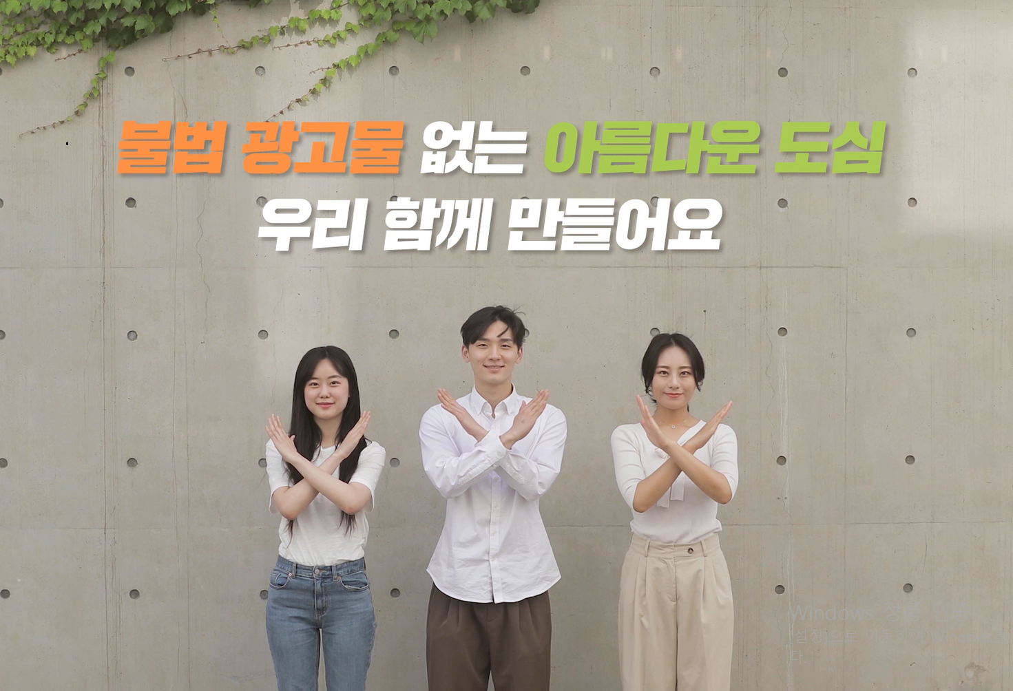 모델을 따라 불법 옥외광고물 근절을 기원하는 포즈(양팔로 X표)를 취한 뒤 사진 촬영!
